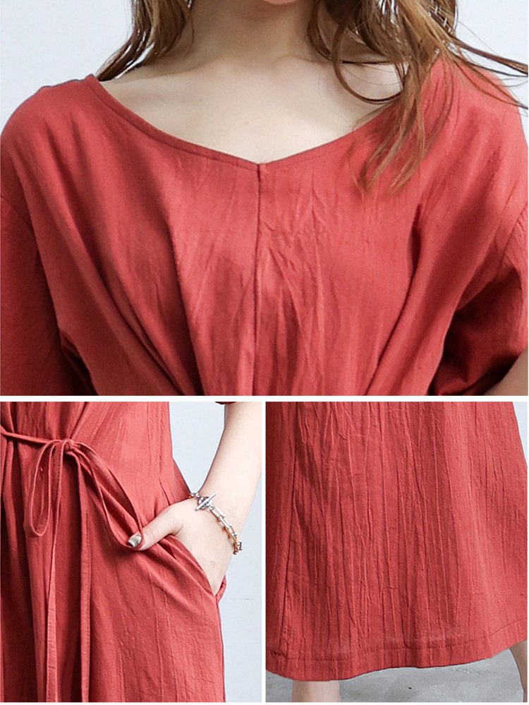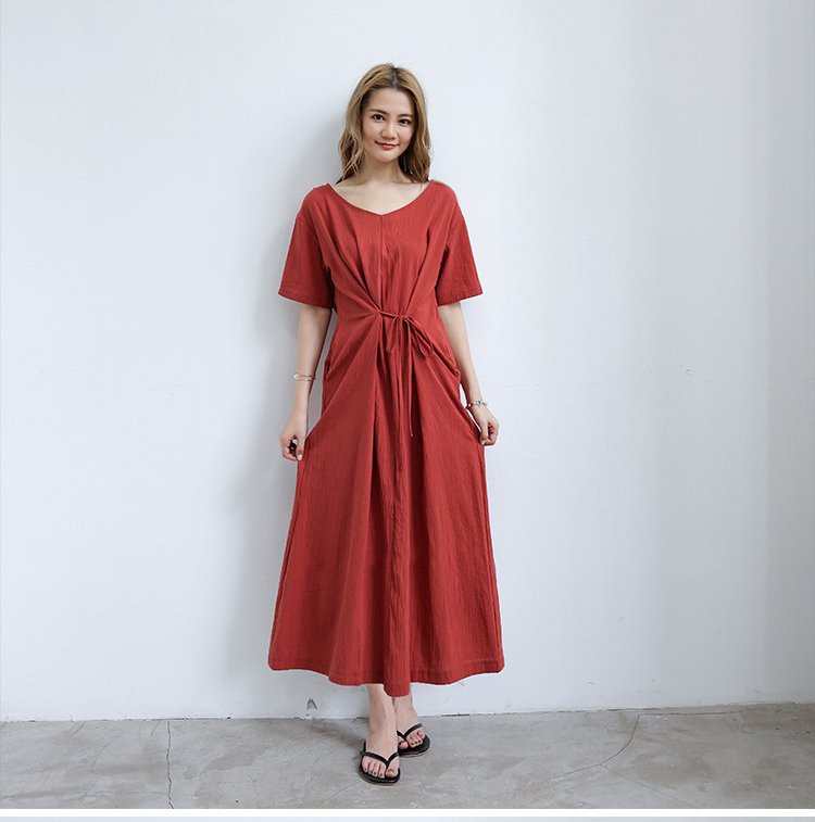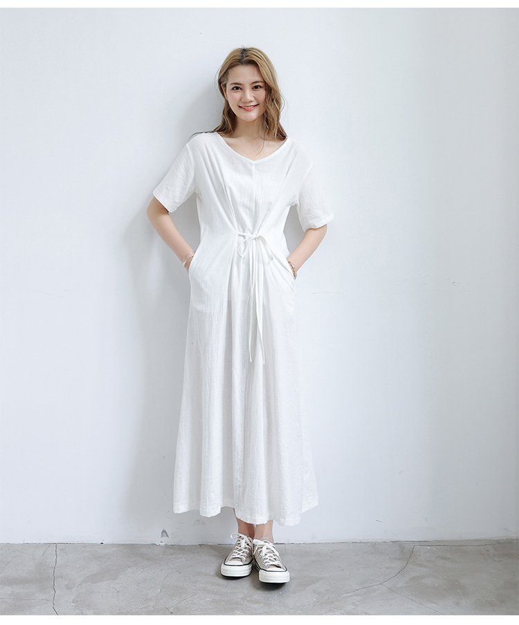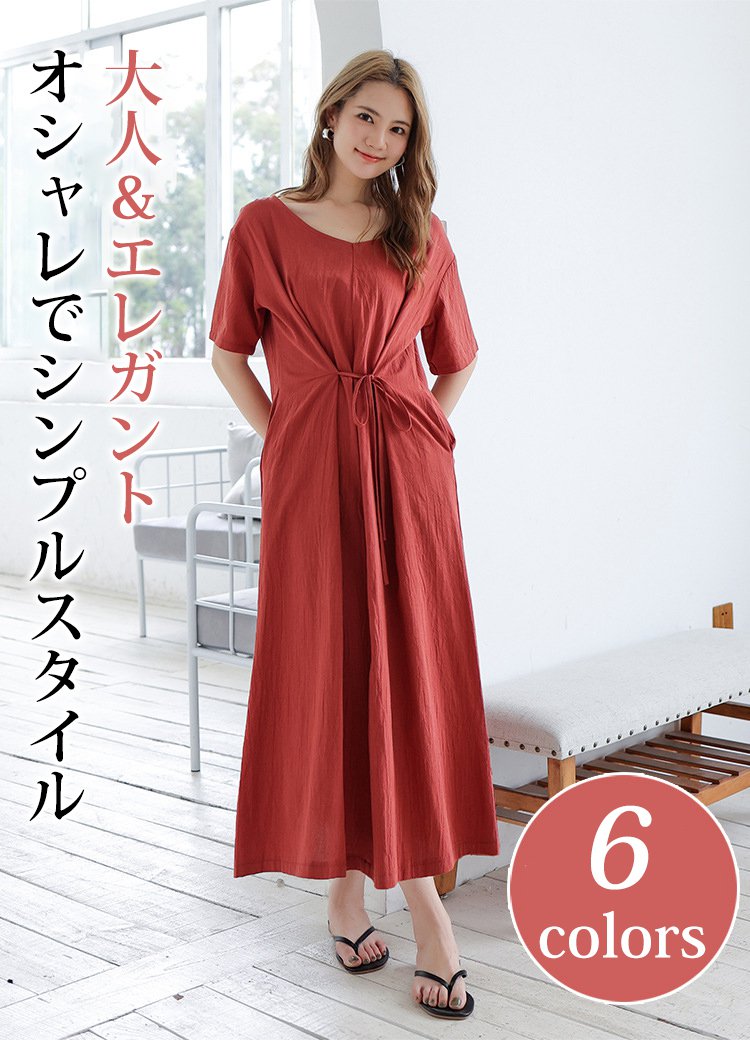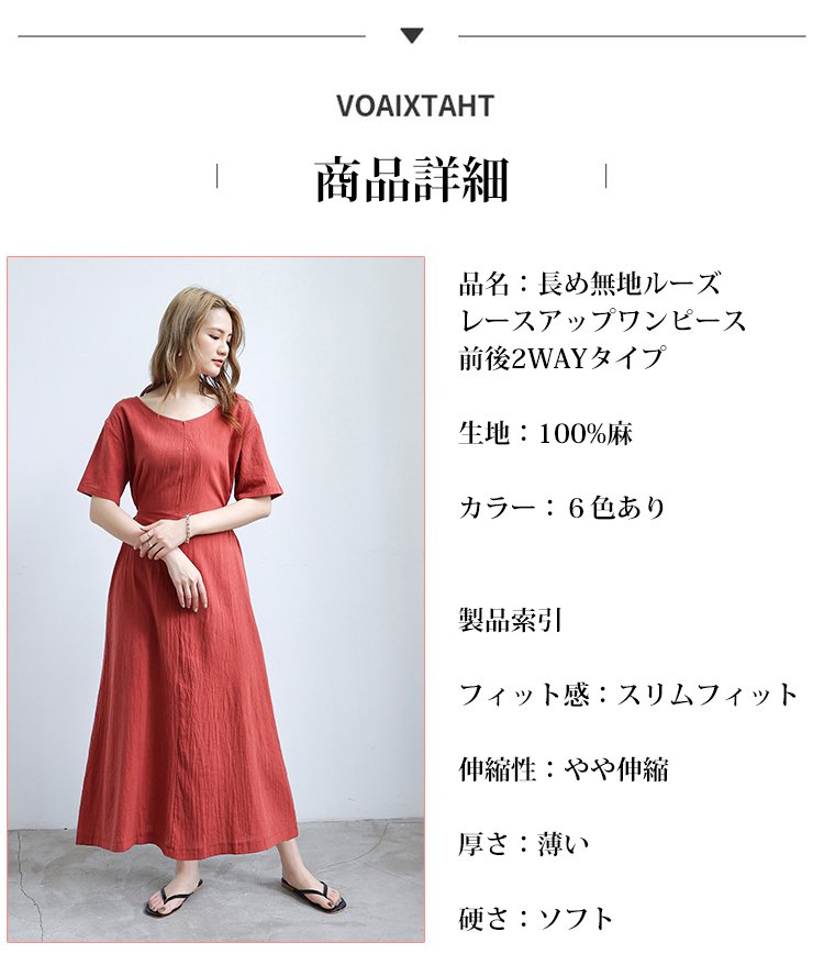 長め無地ルーズなレースアップワンピース前後2WAYタイプ